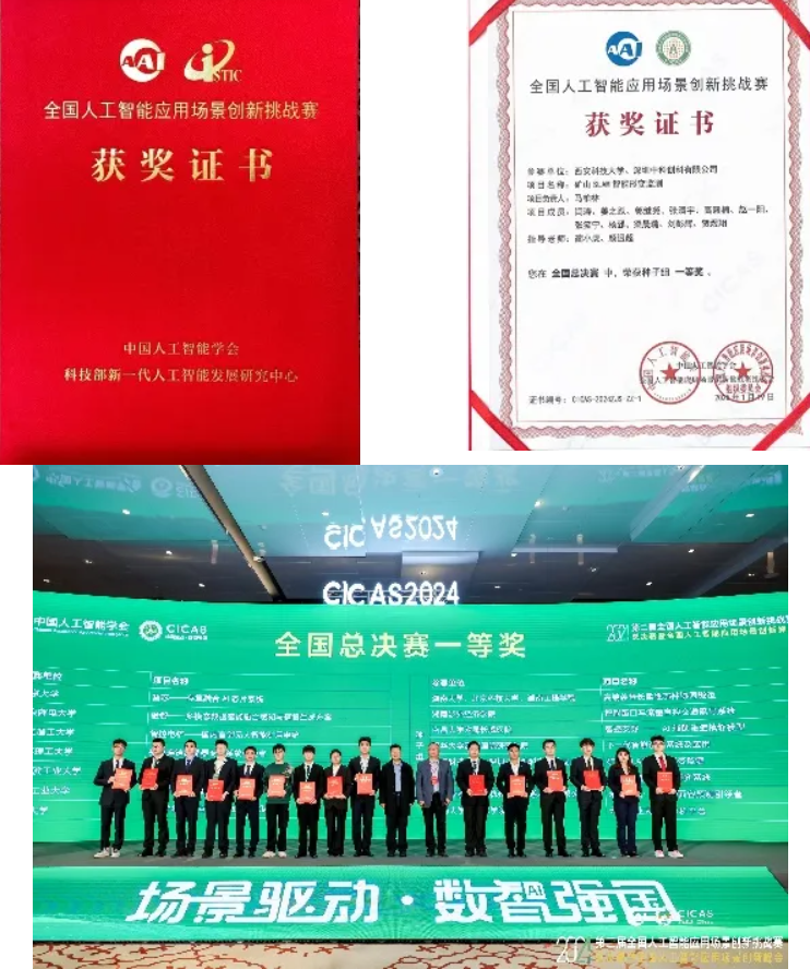 课题组成员们继在智能矿山专项赛中荣获种子组特等奖后,在总决赛中表现出色,通过数据集测评、路演答辩及展览展示等环节,充分展示了项目的创新性和应用价值,最终荣获全国一等奖。这一成绩是对课题组科研实力的肯定,更是公司在推动人工智能技术与产业深度融合方面取得的又一重大突破。