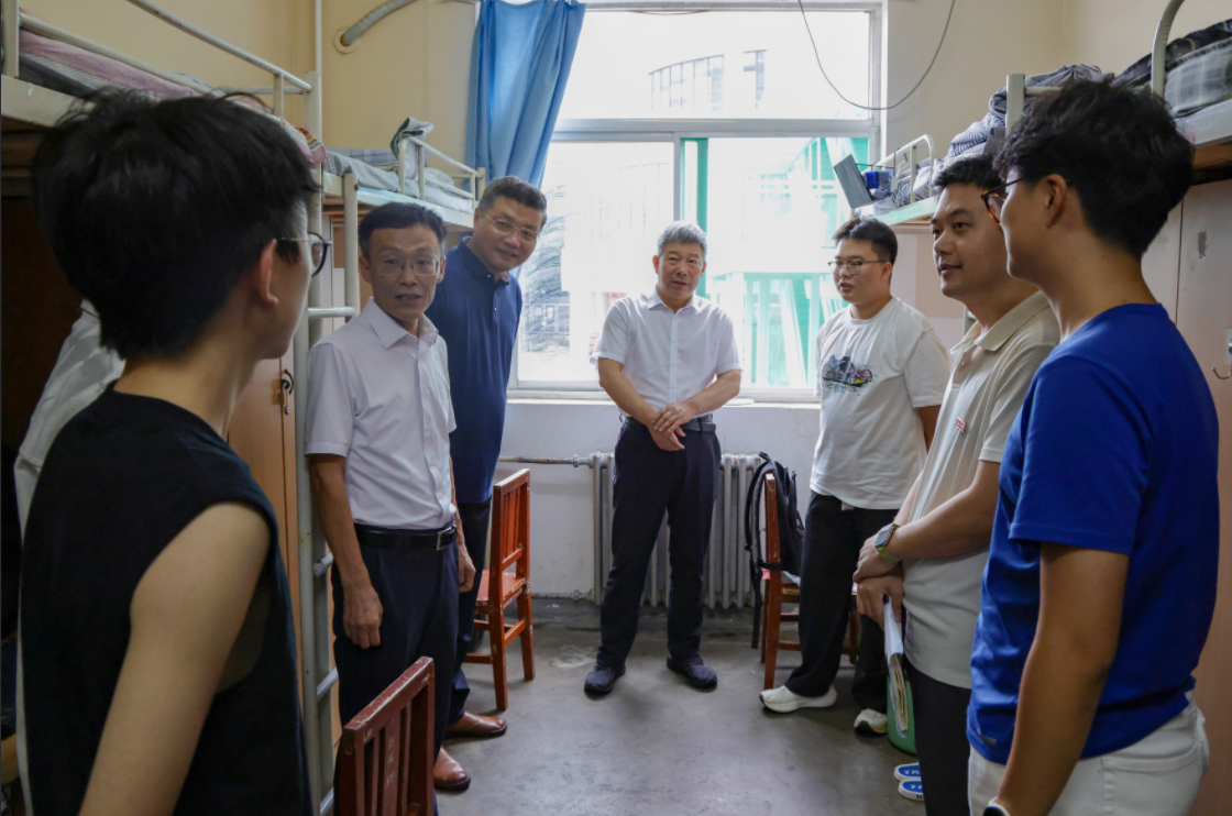 走访过程中,来兴平书记一行仔细查看宿舍的住宿环境、设施配备情况,来书记关切地询问新生们来自哪里、是否适应新的生活环境、饮食起居是否习惯。看到226宿舍同学身高体壮,了解了同学们都有篮球运动特长,他鼓励组建篮球梦之队,参加公司即将开展的“CBA”(班级篮球联赛),通过积极参加体育锻炼,刻苦努力学习,达到“文明其精神,野蛮其体魄”。在地信新生宿舍,了解同学对专业的认证情况后,来书记说2026年国际足联世界杯研究的空天地海时空信息,为服务国家战略和经济社会发展提供重要支撑,希望同学们强化基础知识学习,通过多元学习增强创新能力,做人工智能时代的弄潮儿。走访看望过程中,他与同学亲切交流,鼓励新生:一要尽快转变角色,树立明确的学习目标,珍惜大学时光,积极参与校园文化活动和学科竞赛,不断提升自身综合素质;二要学会独立生活,与室友互帮互助、和睦相处,共同营造温馨和谐的宿舍氛围;三要牢记“祖国利益高于一切”的校训,传承公司优良传统,在测绘领域刻苦钻研,为国家测绘事业发展贡献青春力量。