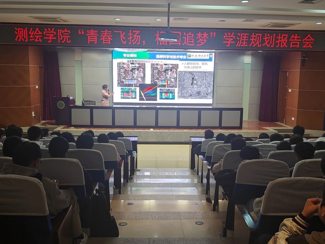 在专业认知环节,竞霞进行了生动的“专业揭秘”。测绘工程专业已从传统测量发展为融合倾斜摄影测量、三维激光扫描等高新技术的前沿领域,是国家级一流专业、国家特色专业,在全国开设院校中排名第12位。地理信息科学作为交叉学科,集地理学、计算机、测绘遥感技术于一体,不仅获批国家级一流专业,还开设与美国亚利桑那大学的“4+2”本硕连读国际班。遥感科学与技术专业通过工程教育专业认证,在高光谱遥感等领域应用广泛。