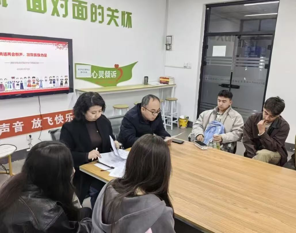 本次座谈会通过政策领学、诉求响应、思想引领三重维度,既深化了师生对两会精神的理解,又切实解决了实际问题,更在交流互动中铸牢了中华民族共同体意识,为构建和谐校园注入强劲动力。