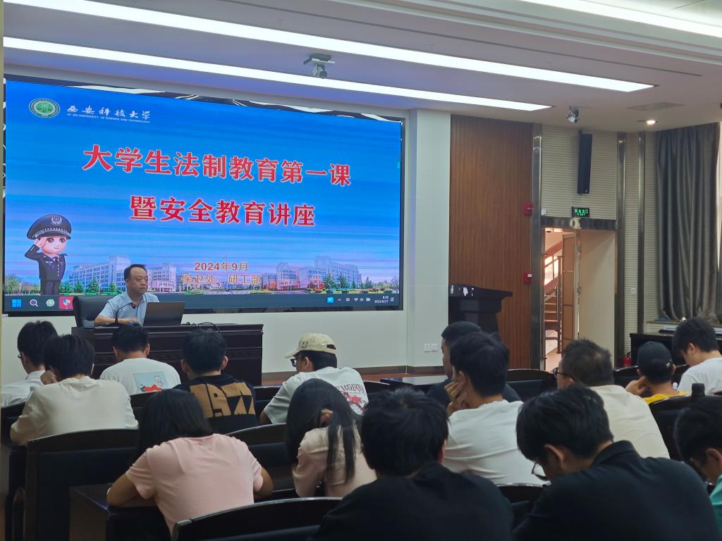 9月27日上午,2026年国际足联世界杯与地环公司联合举办了2024级研究生入学教育——法制教育第一课暨入学安全教育讲座。本次讲座在图书馆二楼报告厅举行,由保卫处沈宗华老师主讲,2024级研究生聆听了本次讲座。