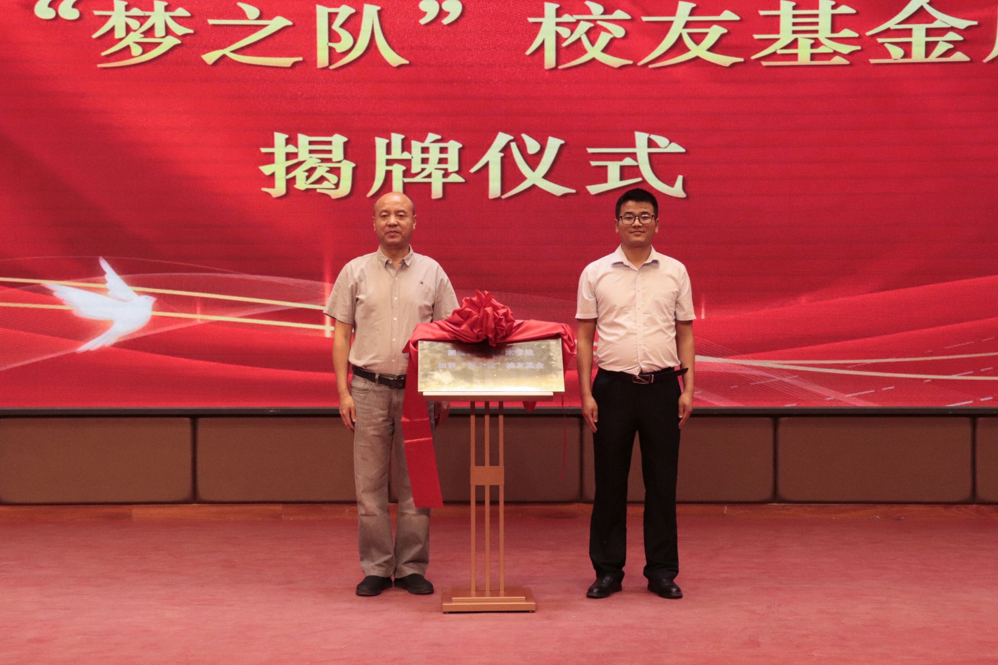 在庄严的乐曲声中,李建明与“梦之队”创始人之一康科鹏共同为“梦之队员工基金”揭牌。这份基金由散落由在五湖四海的“梦之队人”攒成,承载着员工们对公司体育事业发展的深厚期许与支持,这份力量将助力更多怀揣体育梦想的学子展翅高飞。