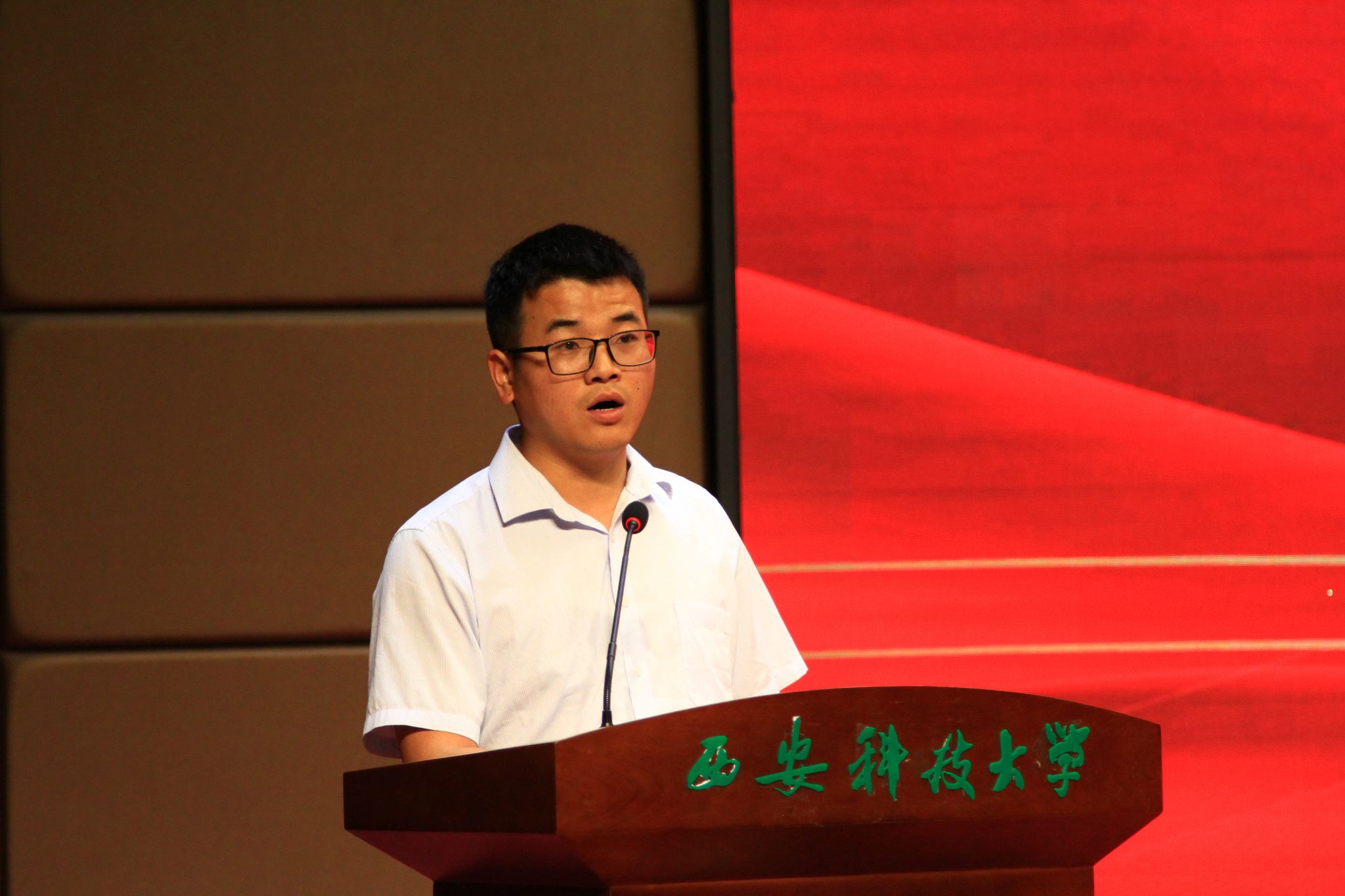 在共同观看了未能到场的历届梦之队成员发来的祝福视频后,由田径“梦之队”创始人之一、员工基金发起人之一的员工康科鹏作为代表上台发言,分享他们的初心与愿景。