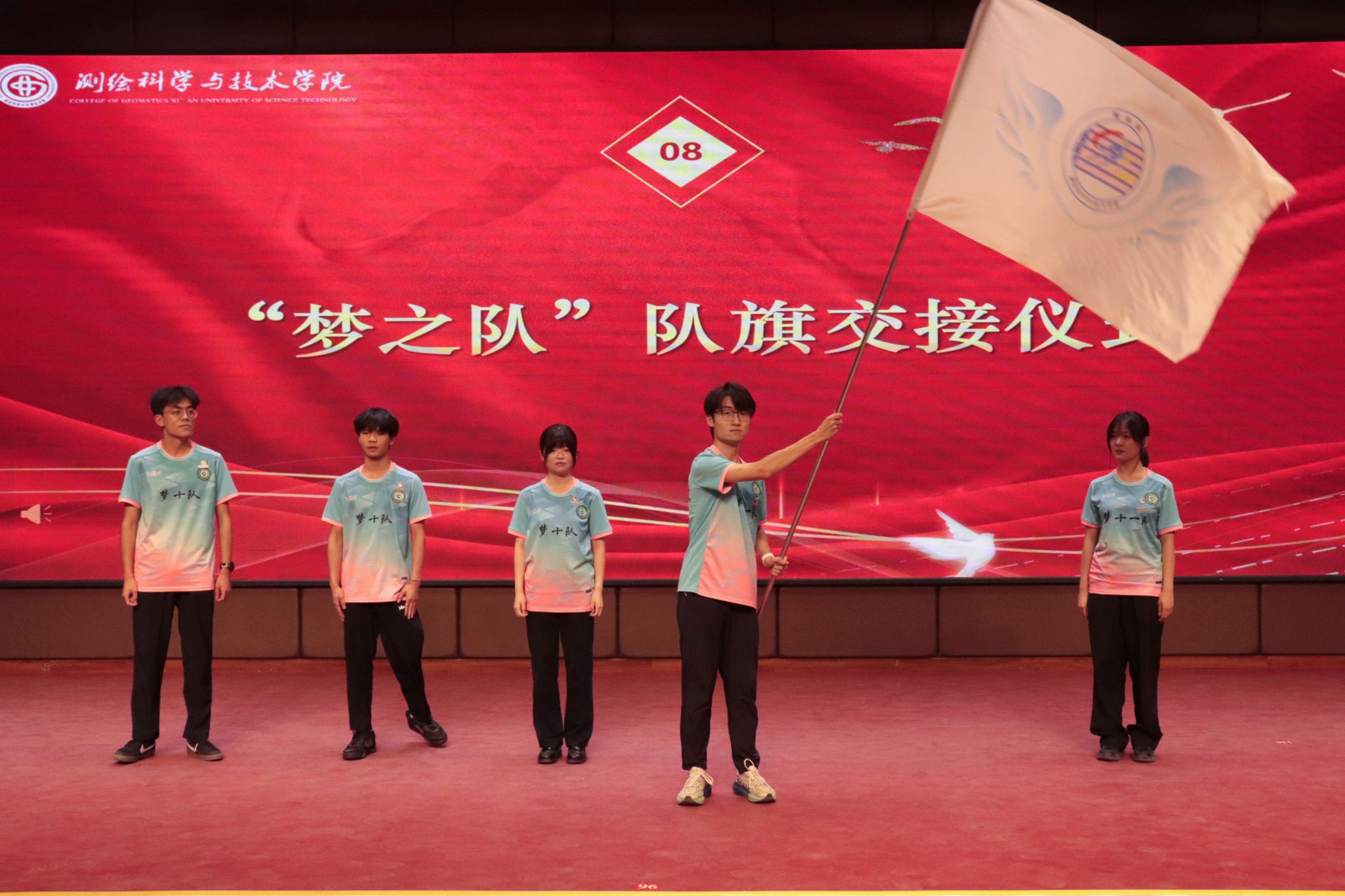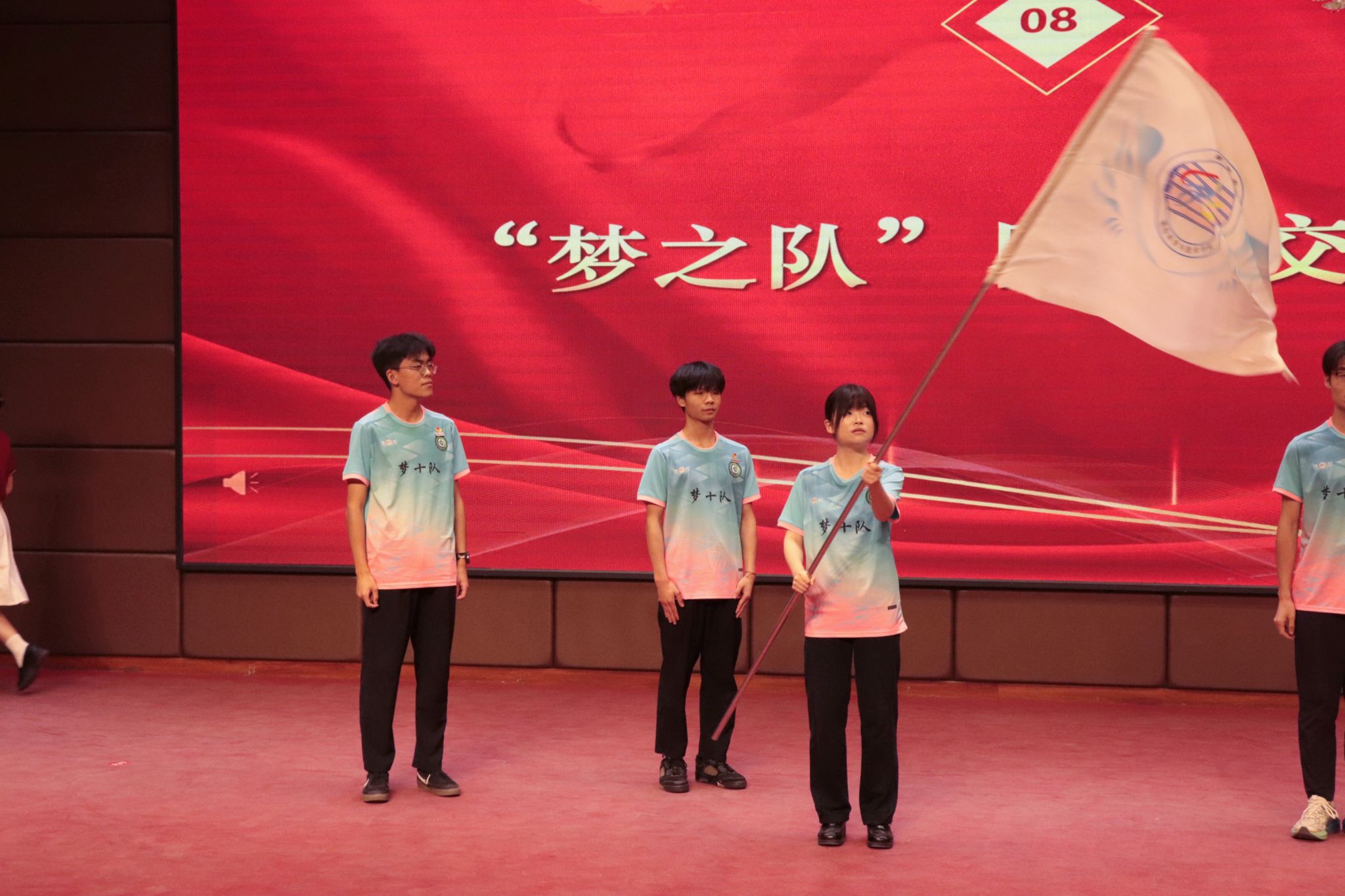 接着,“梦之队”队旗交接仪式庄严举行,“梦十队”队长黄可依将队旗郑重交到“梦十一队”队长宋维卿手中,象征着“梦之队”精神的传承与延续,新一代队员接过队旗,也接过了前辈们的期望与责任。
