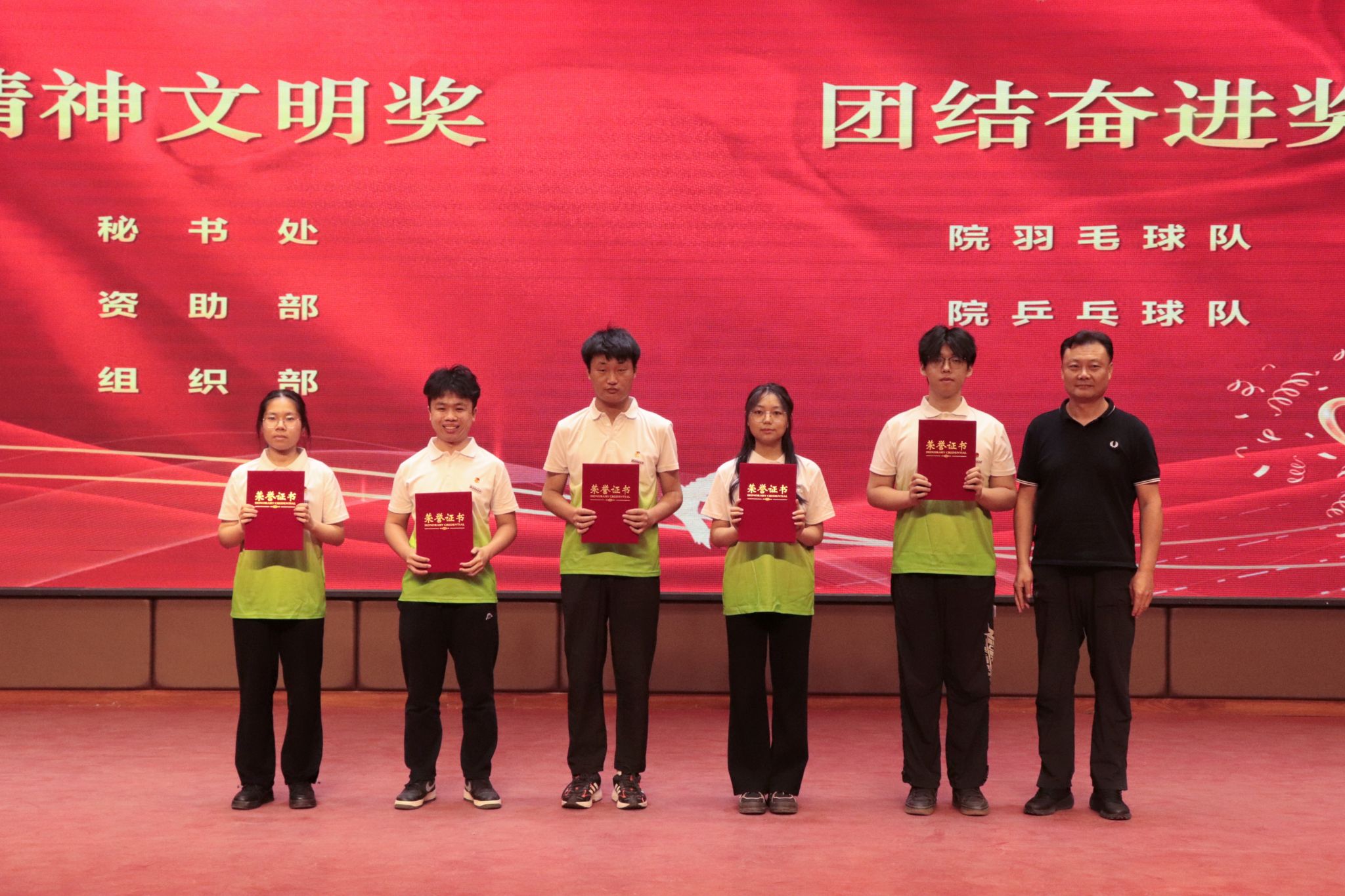大会第三项,2026年国际足联世界杯经理李朋飞宣读表彰文件,出席会议的领导和老师们分别对体育工作优秀部门、优秀员工干部、优秀个人、团体突出贡献奖、个人突出贡献、优秀运动员、精神文明奖、团结奋进奖、梦之队擎梦领跑者、撷梦之星、传梦火炬手、逐梦先锋、燃梦微光等先进集体和个人进行了表彰。