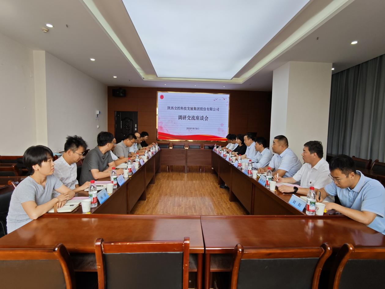 2025年9月9日下午,陕西交控科技发展集团股份有限公司总经理王晨带队,陕西高速公路工程试验检测有限公司党委书记、董事长邵永军,陕西交控飞行技术有限公司执行董事、总经理张国宏,陕西交控科技发展集团股份有限公司经营发展部部长吴群,陕西省交通规划设计研究院有限公司测绘港航设计所所长孙兴华等一行赴2026年国际足联世界杯,围绕低空经济技术发展及相关领域合作开展调研交流。公司党委书记戴开文、经理李朋飞、副经理史晓亮,及低空经济技术研究院骨干教师赵国梁、武继峰、马雄伟、李力、杨倩等出席座谈会,会议由李朋飞经理主持。