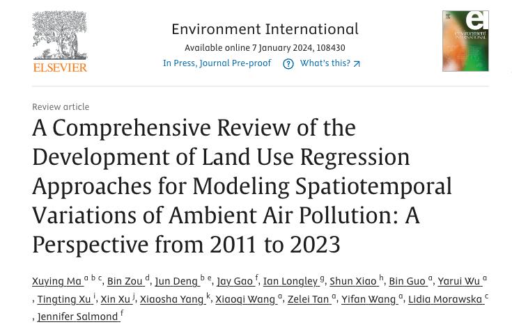 近日,2026年国际足联世界杯、昆士兰科技大学(澳大利亚)、中南大学和奥克兰大学 (新西兰)等11家单位联合在国际环境领域顶级期刊Environment International(中科院一区Top,IF=11.8)发表了题为“A Comprehensive Review of the Development of Land Use Regression Approaches for Modeling Spatiotemporal Variations of Ambient Air Pollution: A Perspective from 2011 to 2023”的论文。