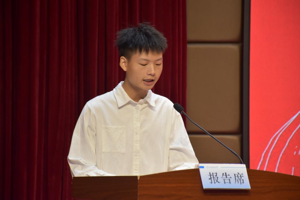 测绘工程2102班张宏作为在校员工代表发言。他表示作为老员工,学习始终是我们的首要任务,要将目光放得长远,脚踏实地走好每一步。大学不仅要获取知识,更是要培养品德和价值观,我们要恪守诚信,尊重他人,积极参加社会活动,以青春之礼助梦想之舟,为社会做贡献,树立远大的理想目标。