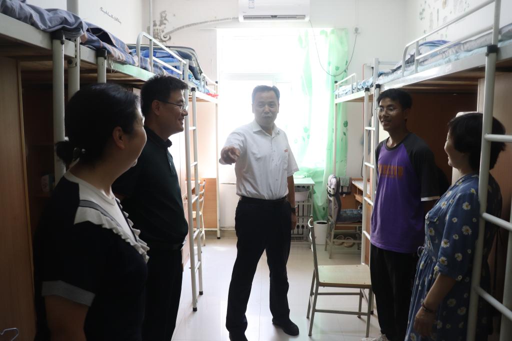 在新生宿舍里,陈春林与同学们进行了亲切交流,了解同学们来校后的感受,对公司的印象等,并叮嘱同学们要做好学习规划、树立学习目标、抓住学习机会,同时还要加强体育锻炼,保证身体健康。
